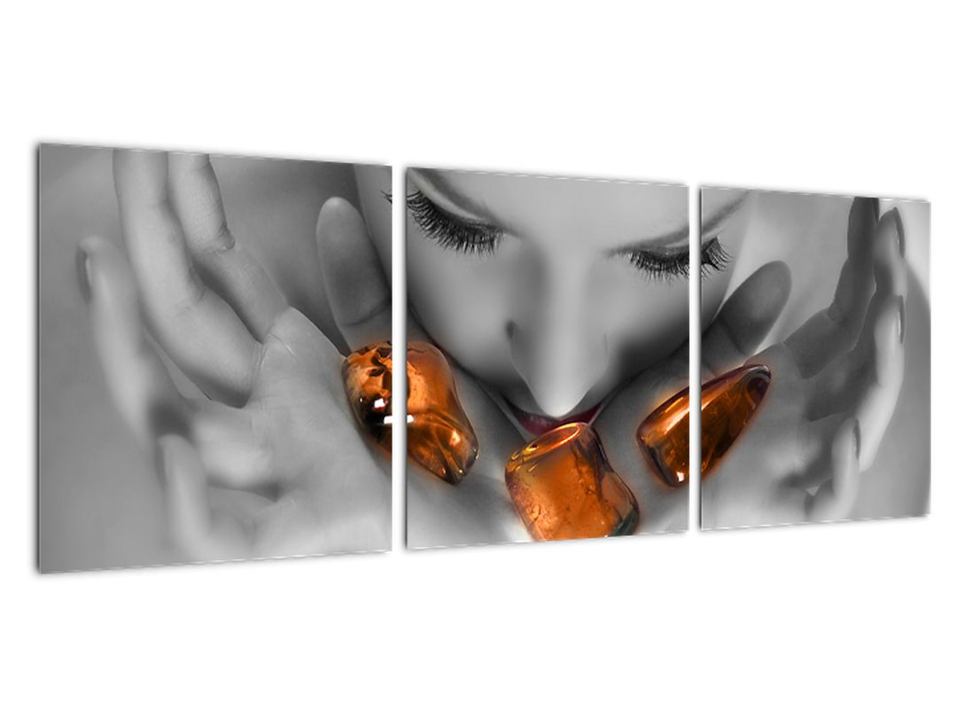 - Obraz - oranžové kameny v dlani 90x30cm