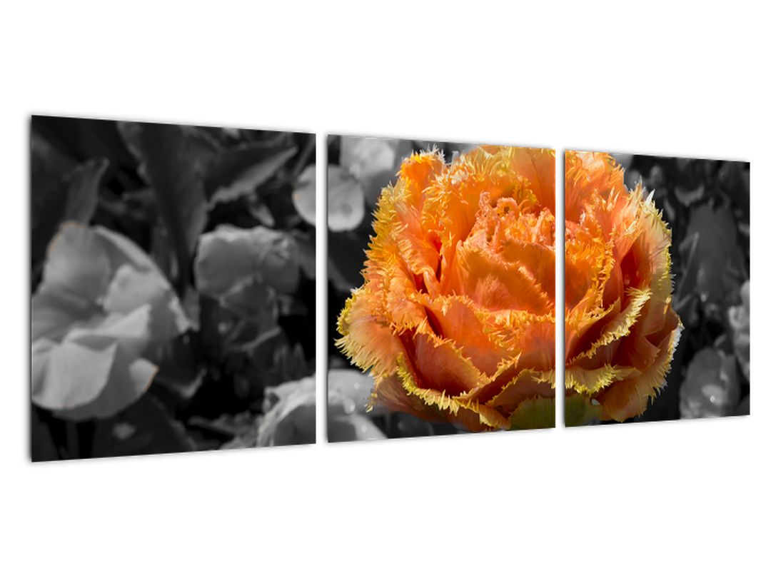 - Oranžový květ na černobílém pozadí - obraz 90x30cm