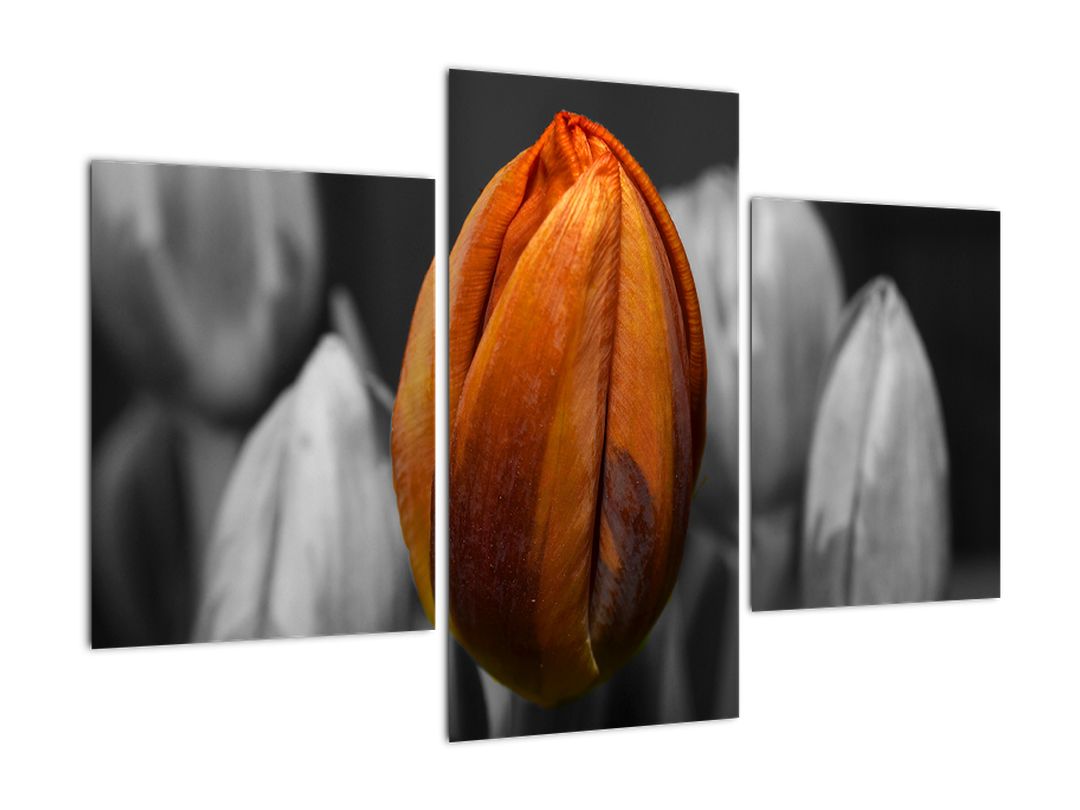 Oranžový tulipán mezi černobílými - obrazDostupné do 2-3 dní1 299 Kč/ ks1 074 Kč bez DPH