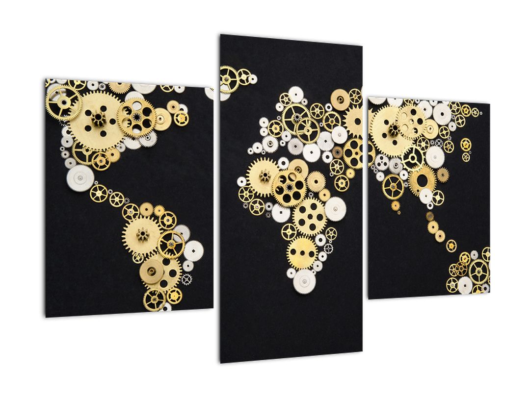 - Mapa světa z ozubených kol - obraz na stěnu