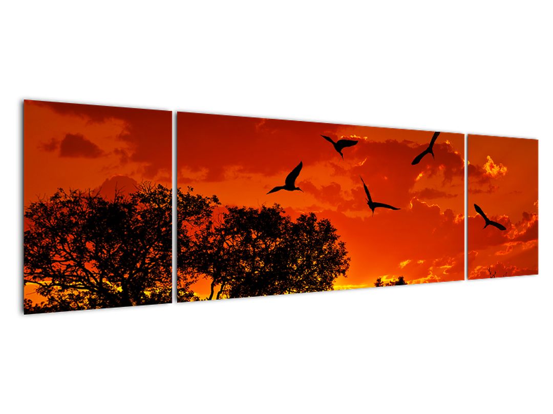 - Obraz zapadajícího slunce s ptáky