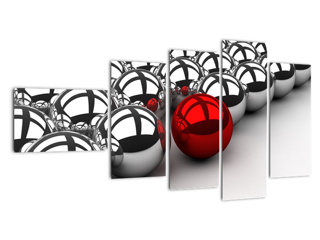 - Obraz červené koule mezi stříbrnými