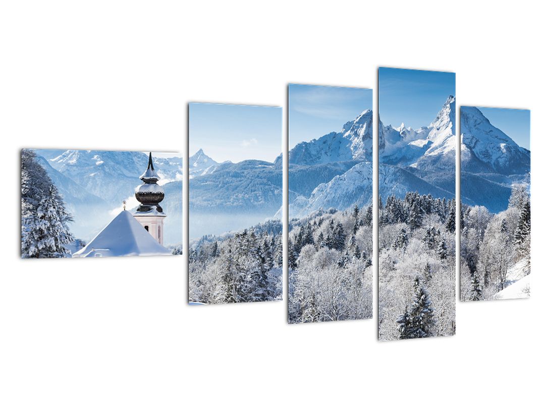 Kostel v horách - obraz zimní krajiny