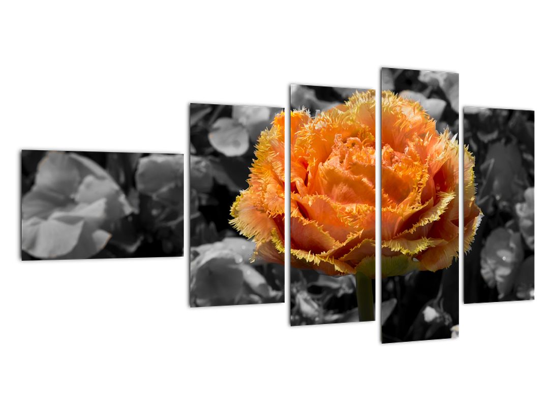 - Oranžový květ na černobílém pozadí - obraz