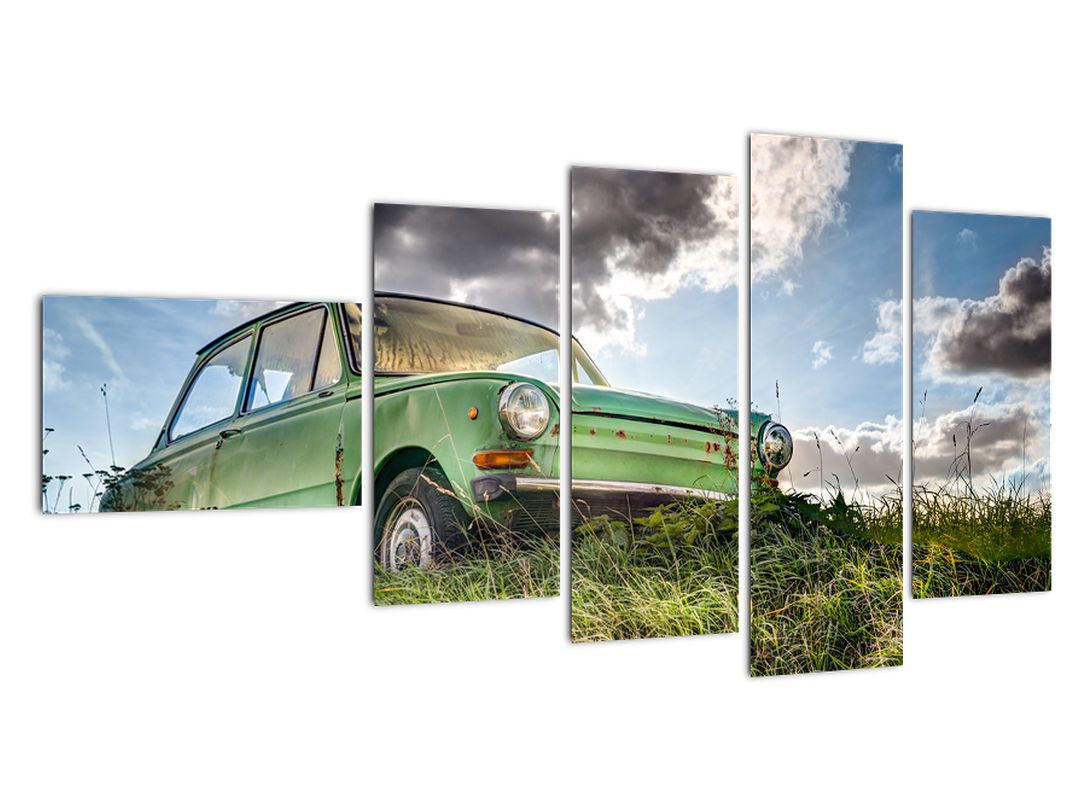 - Obraz zeleného auta v trávě