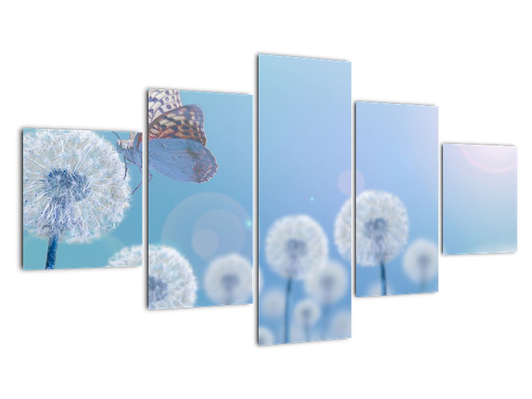 - Obraz pampelišek na modrém pozadí