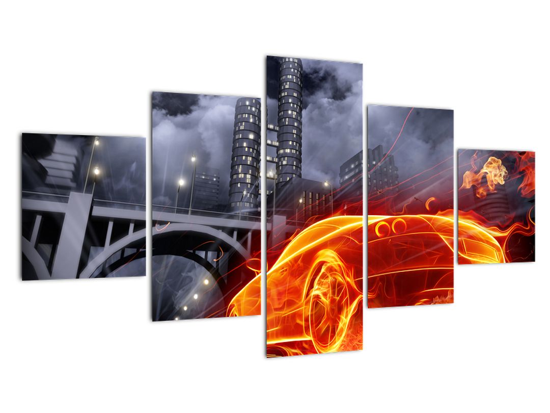 - Moderní obraz - ohnivé auto
