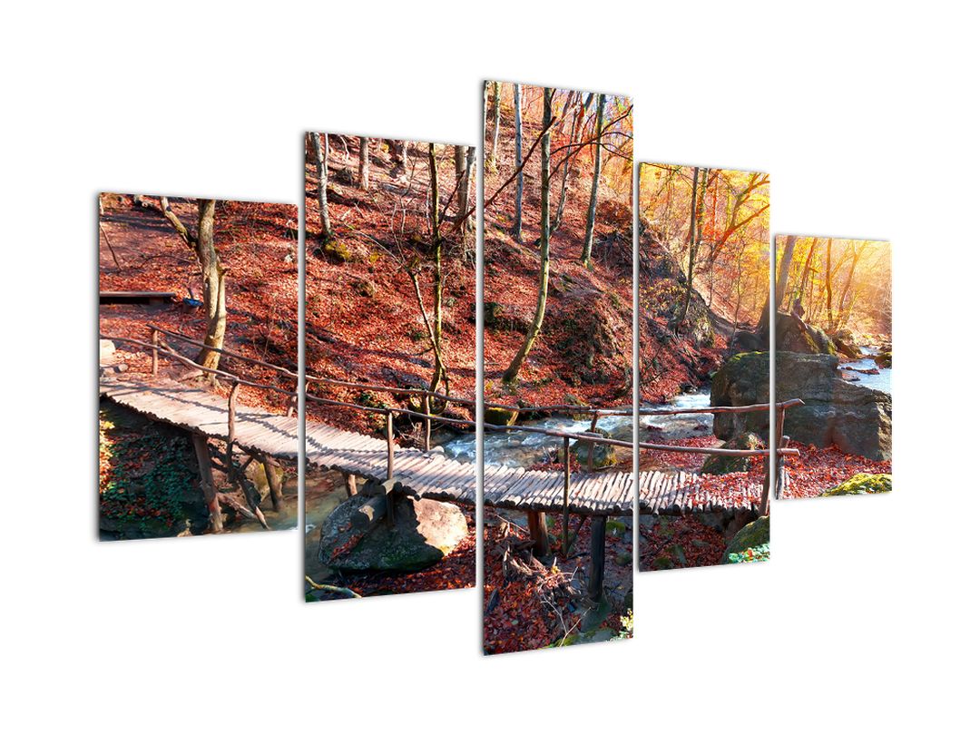 - Obraz mostu - podzimní cesta lesem