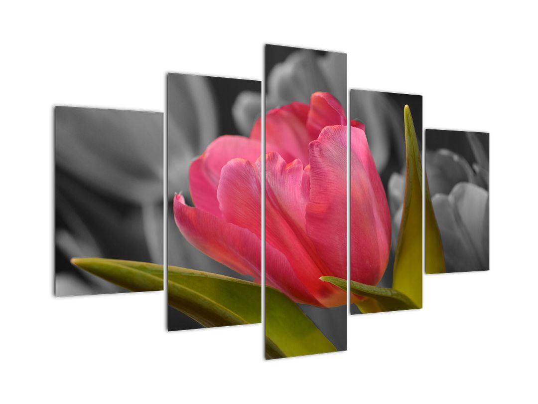 - Obraz červeného tulipánu na černobílém pozadí