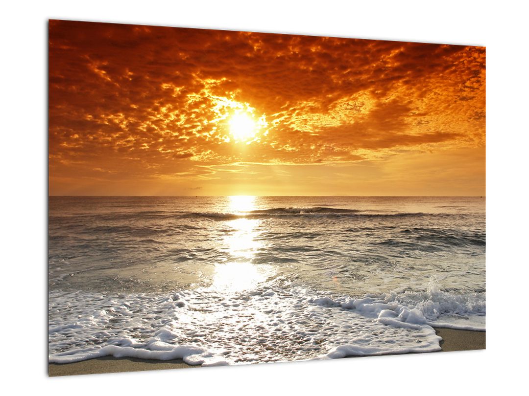 Obraz písečného pobřeží při západu slunce