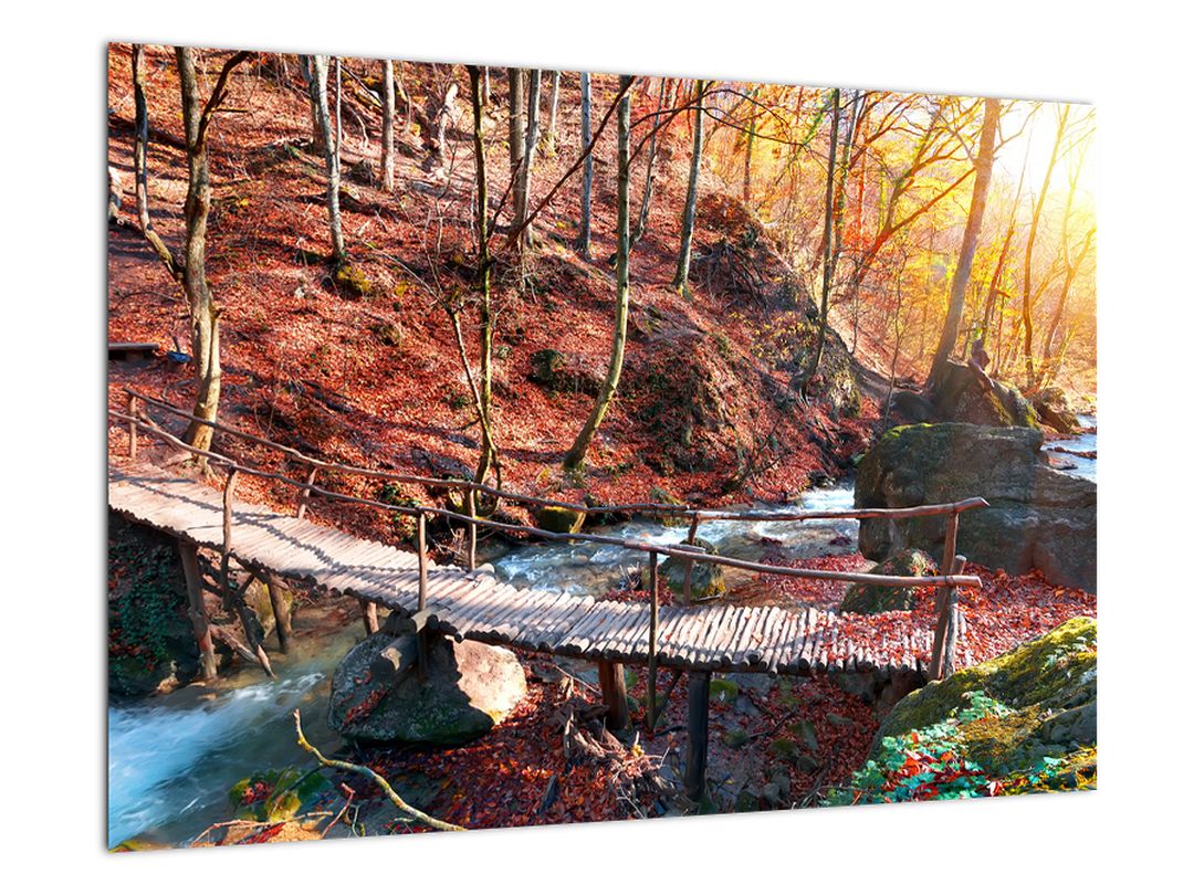 - Obraz mostu - podzimní cesta lesem
