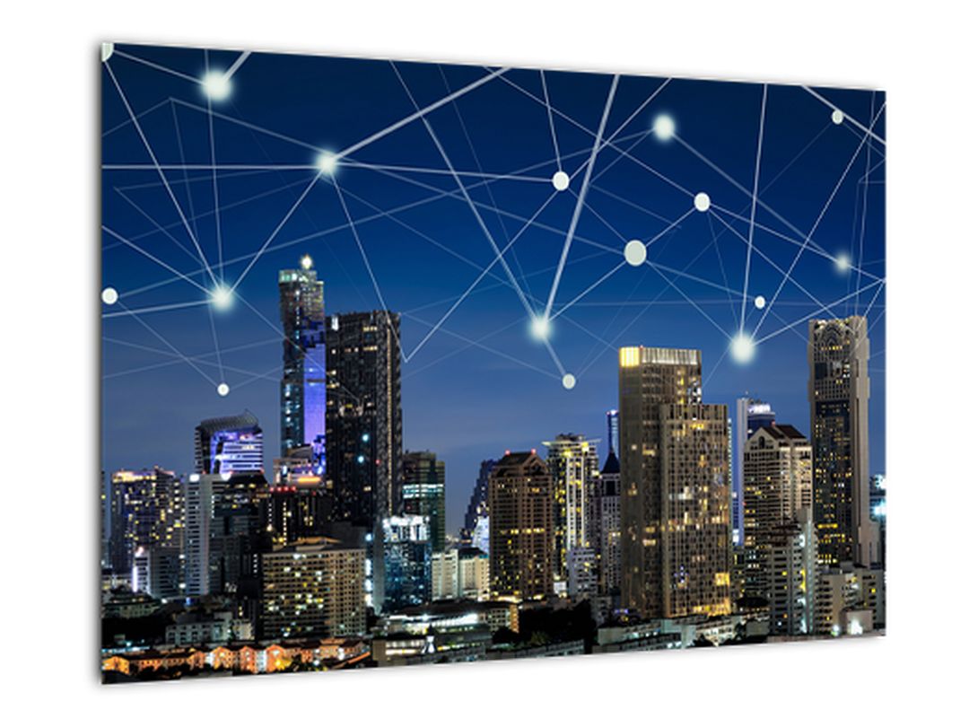 - Moderní obraz: večerní město budoucnosti