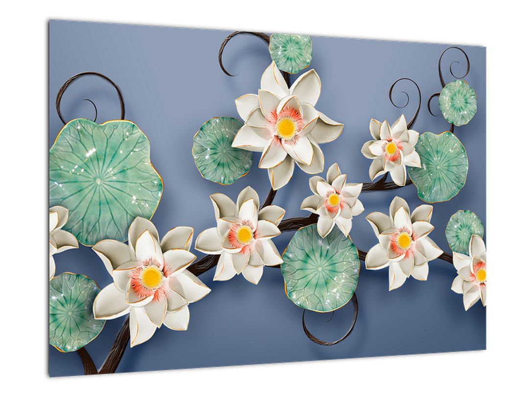 - Květy na modrém pozadí - obraz