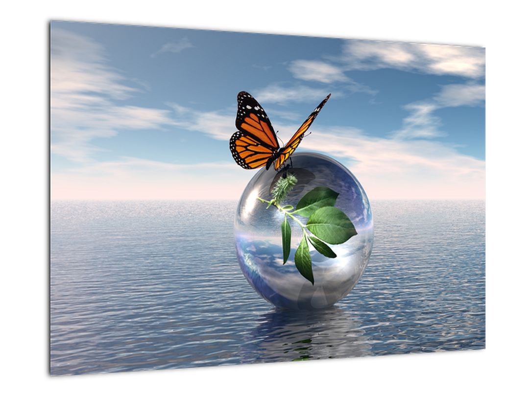 - Abstraktní obraz - motýl na kouli