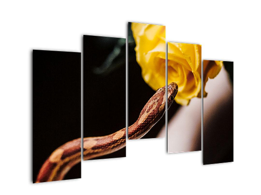 - Obraz hada se žlutou růží 125x90cm